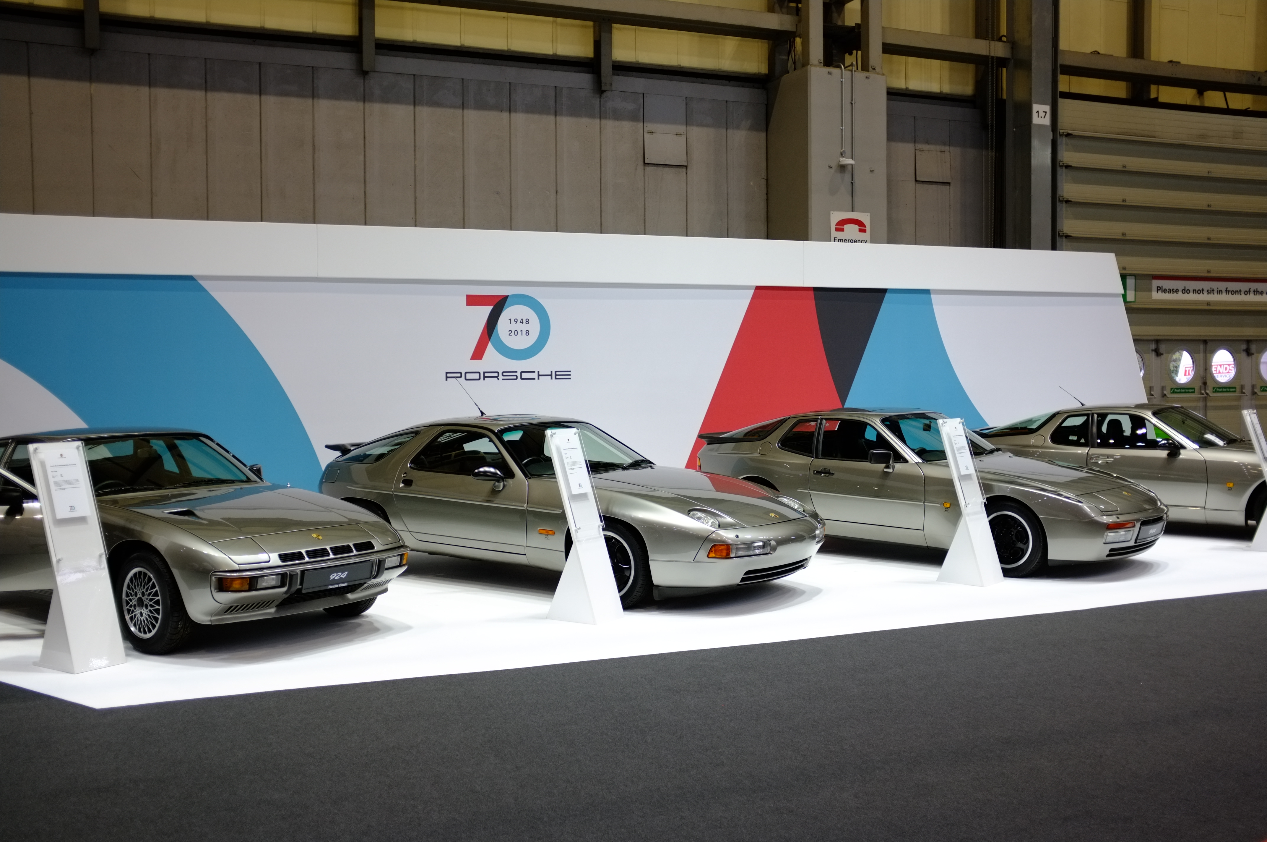 Moving to Porsche in the same hall I found a fantastic display to coincide with their 70th anniversary celebrations. The front mounted collection was rather nice, all being in a gunmetal silver colour. I rather like the 924 Turbo on the left.