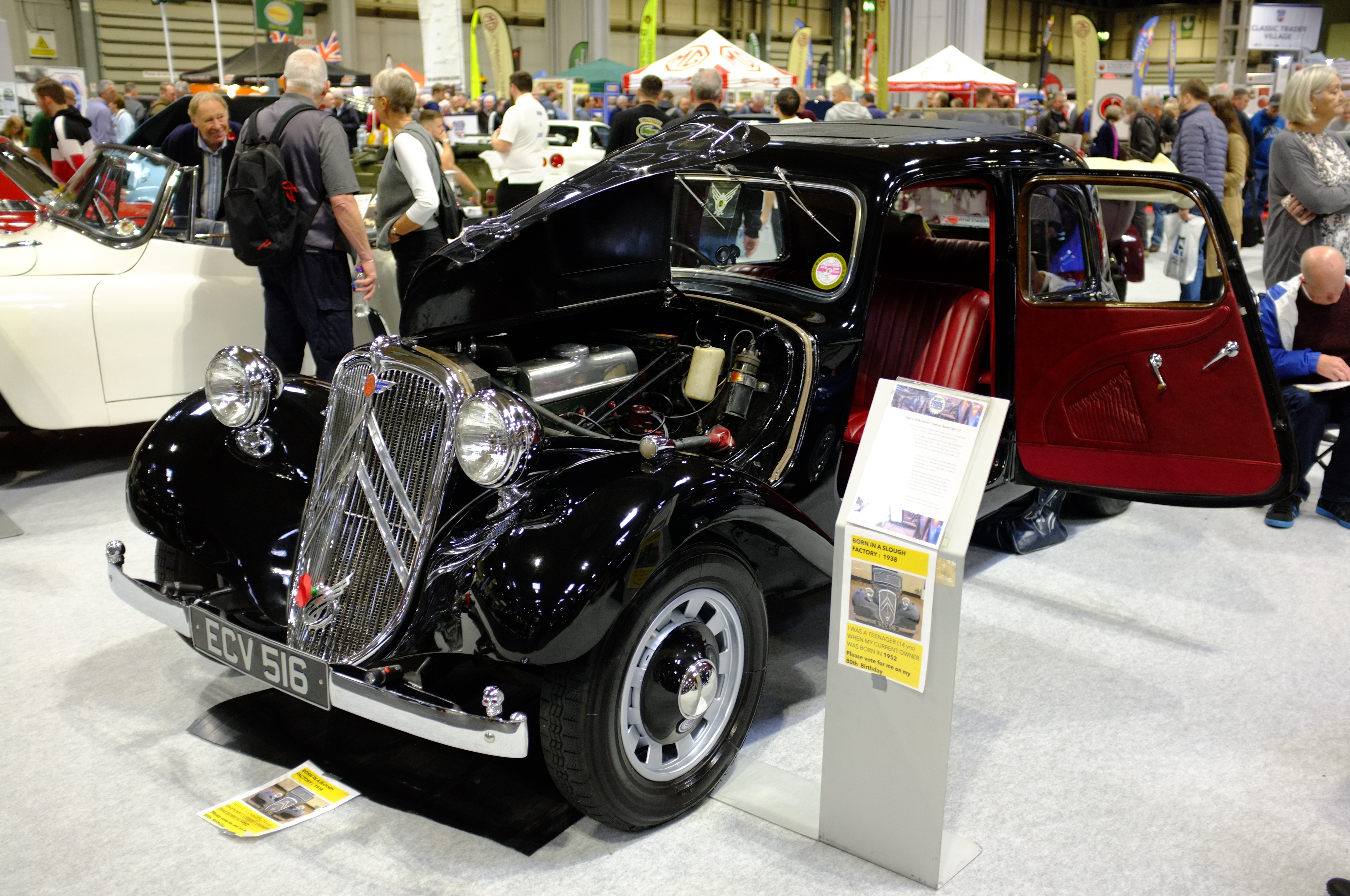 On the pride of ownership was a stunning 7CV, which is the earlier car with a 1.5 Litre engine producing 46 bhp. Introduced in 1934 the 7a had about 36bhp from it’s 1.3, but the car continued to develop into the more common 11CV which I found earlier. Big and small bodies, a variety of commercial and people carriers too.  The earlier car is really quite attractive and this one was in superb condition, just look at the black on red colour combination. It was even driven to the show from Ireland.