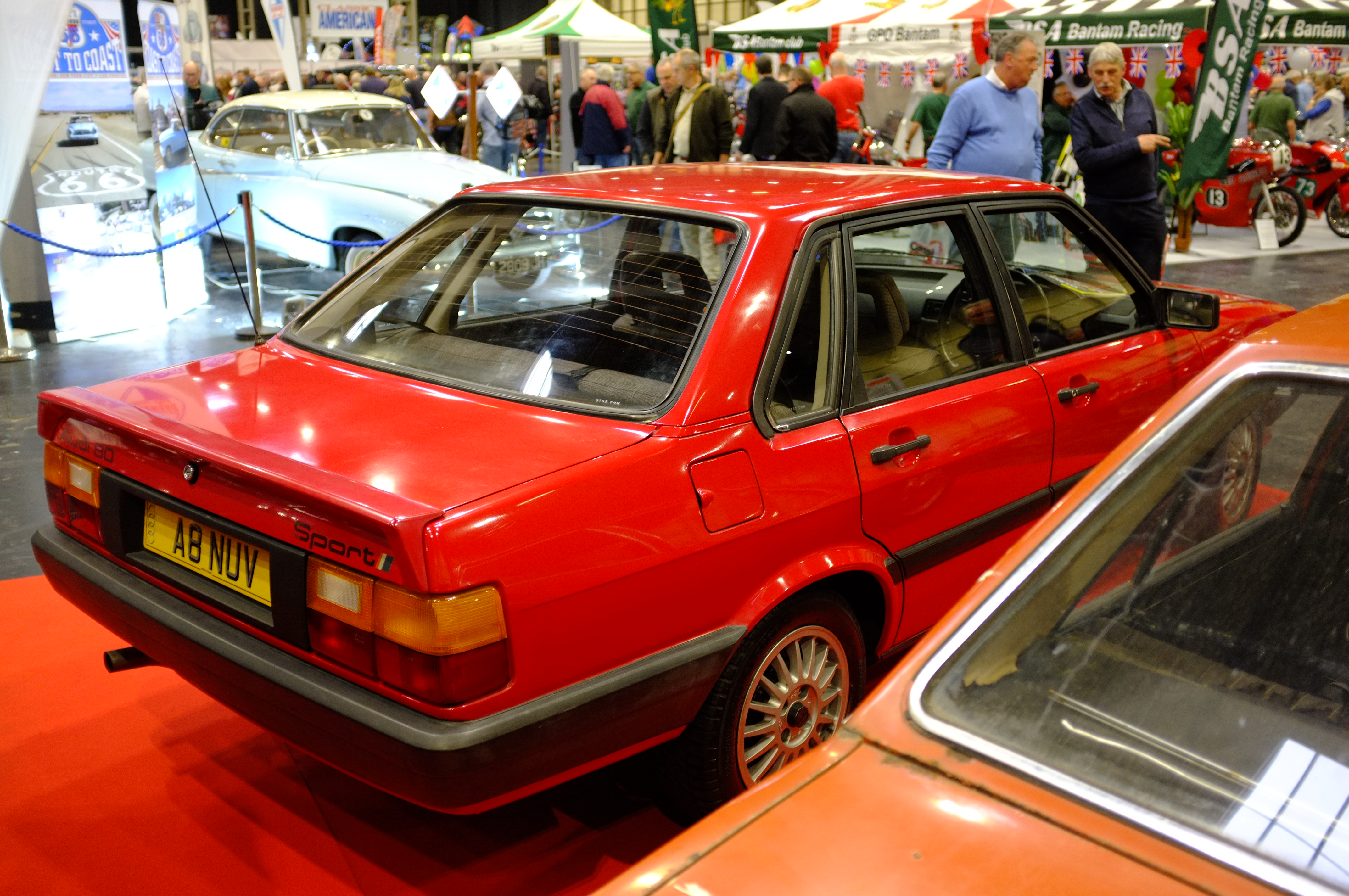A walk through the club stands found me stopped at the Audi Owners Club and a rather nice B2 Audi 80 Sport. Built to commemorate Audi winning the World Rally Championship they built a lighter version of the more ordinary 80 saloon. They even modified the rear suspension mounts to reduce the car’s ride height rather than just fit shorter springs. The result was 985kg and a decent handling car, which was better than the Golf GTI which it donated it’s engine to. And my dad had one when new, in white with the Audi Sport Graphics.