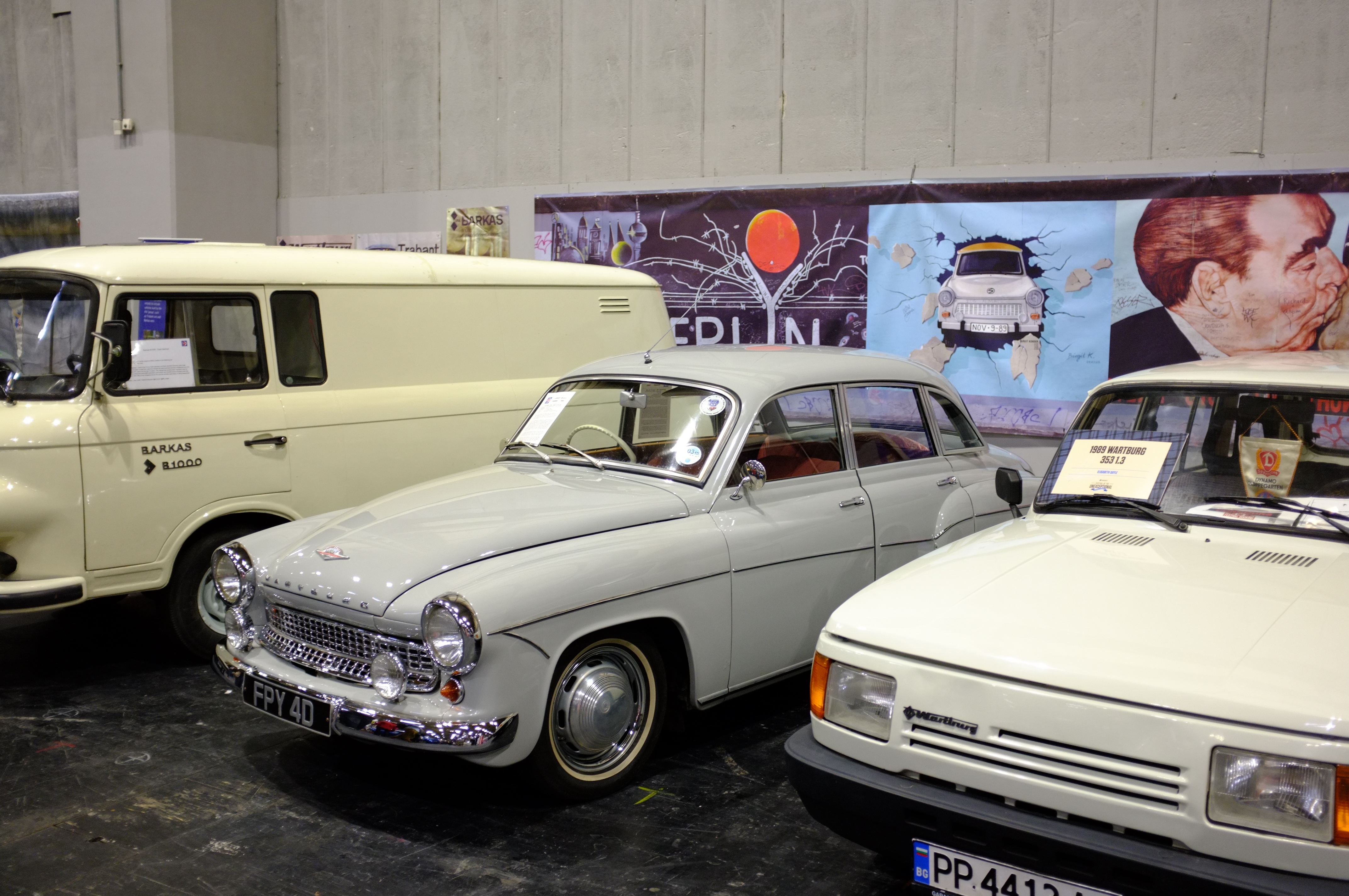 The Wartburg 311 in the middle is a really pretty car, powered by the 3 cylinder two stroke engine that can be found in Barkas vans for example and occasionally a Trabant. One conversion was on the stand, it was so popular I couldn’t get a decent picture of it!