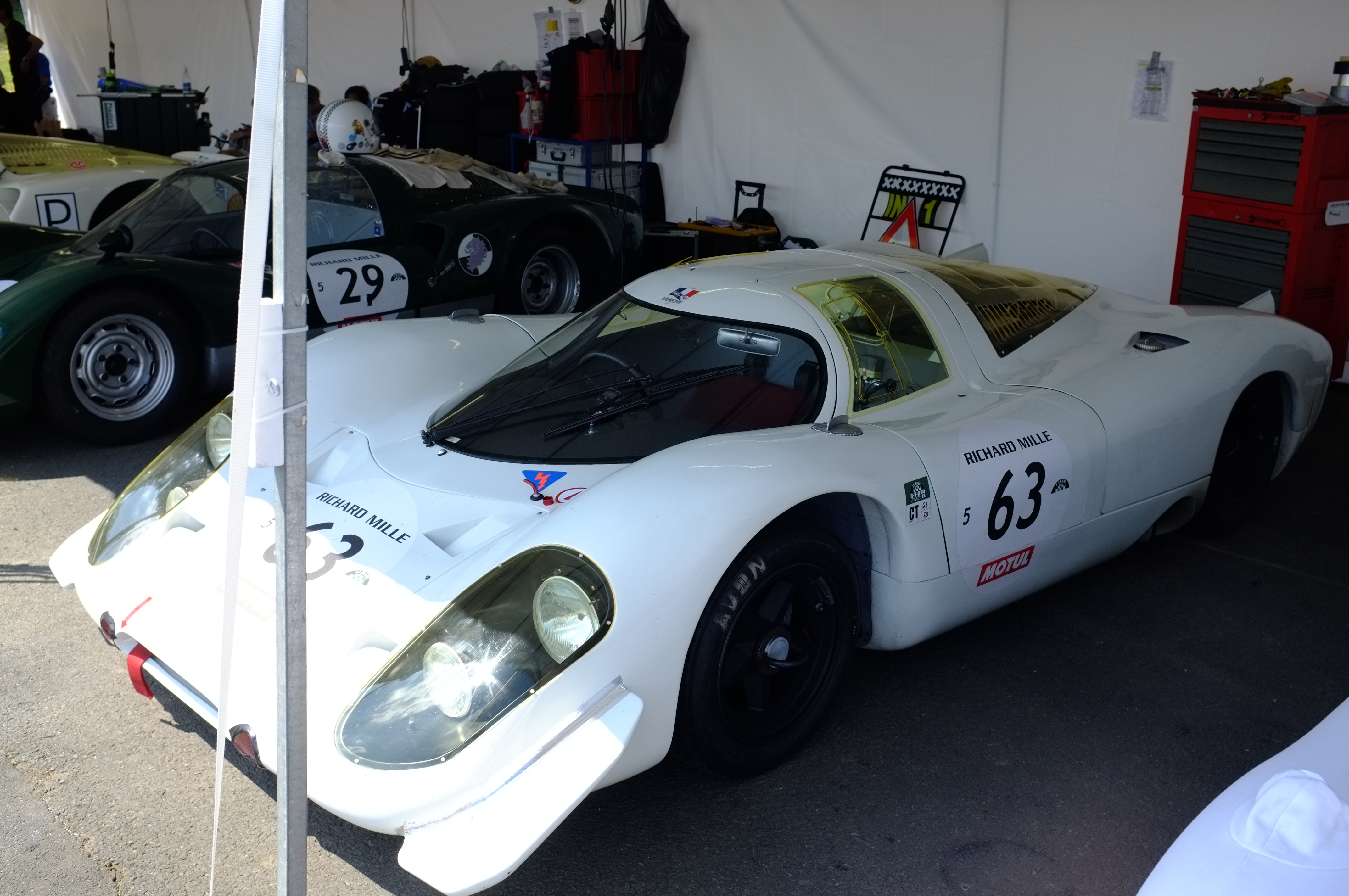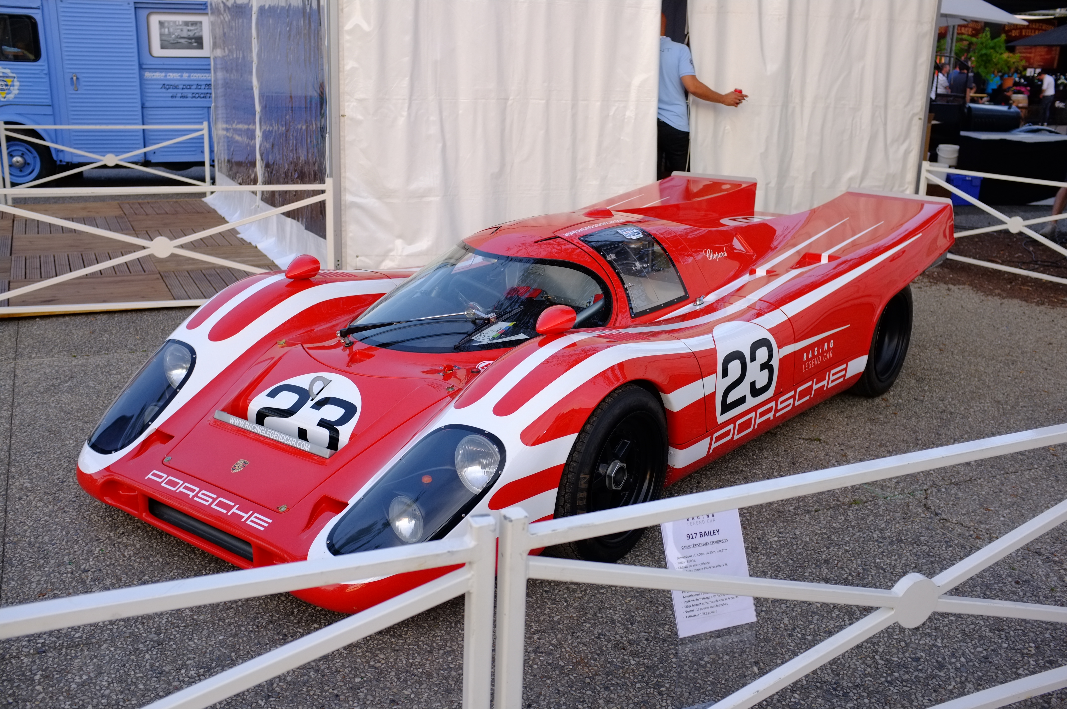 The winning car was the works Porsche in red and white, with the 4.5L engine, the larger engine cars not finishing. Speaking of the works car…. This was stunning, but not the real thing. A beautifully crafted replica with a flat 6 engine.