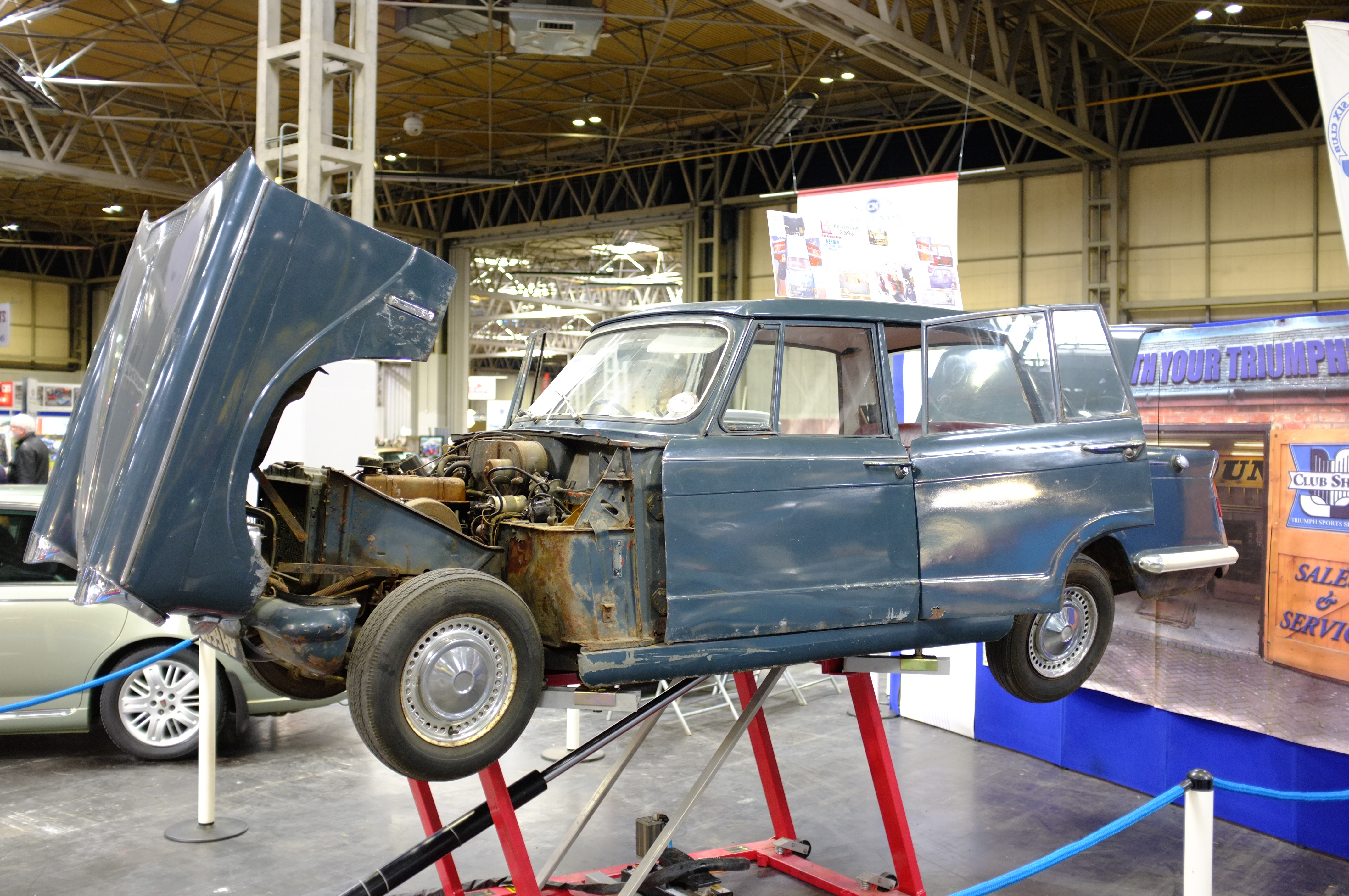 I like to find something unusual to finish on, this was it, the 4 door prototype Triumph Herald. They never put this into production, if they did it would have sold well I think, it’s amazing that it’s still around.
